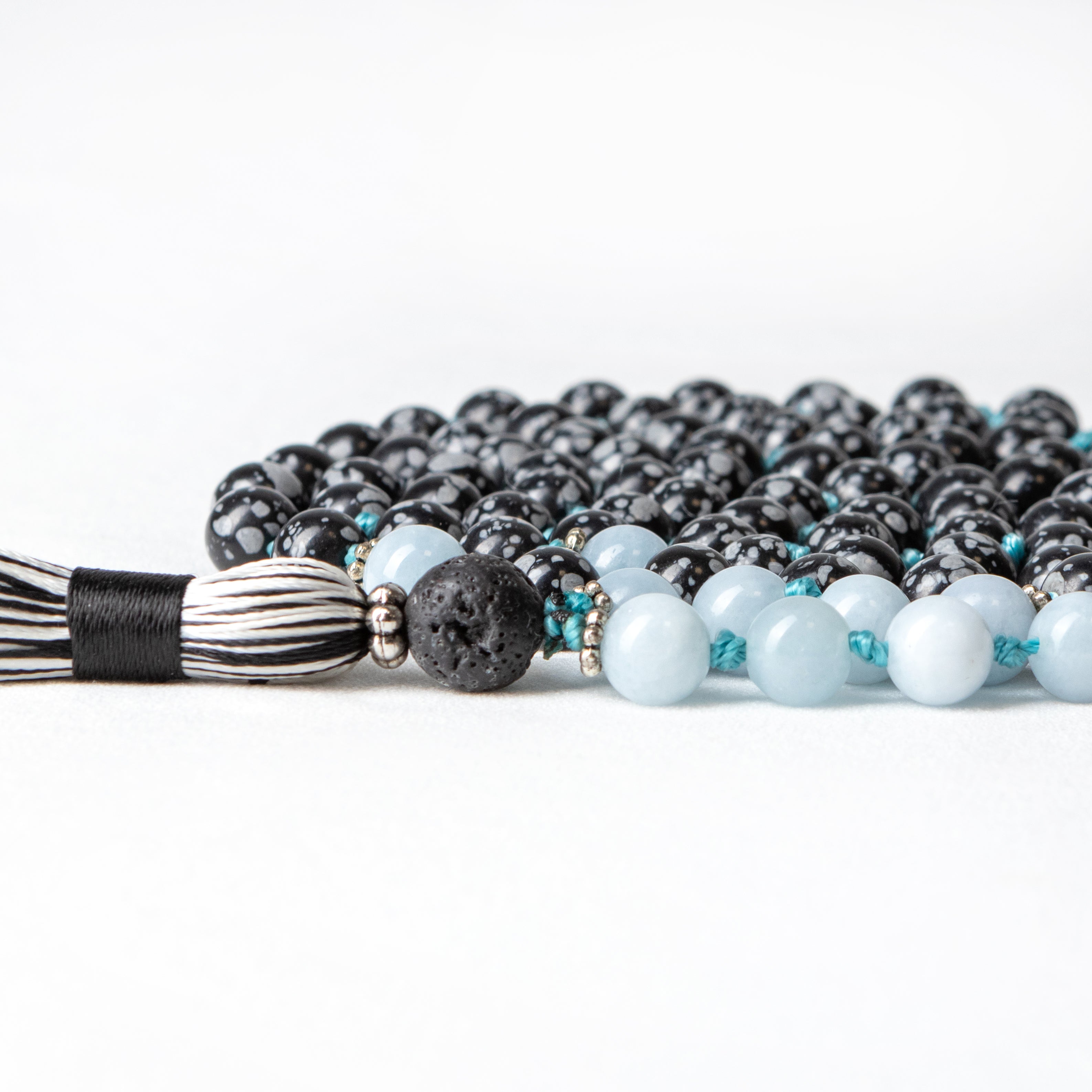 Gemini | Snowflake Obsidian Aquamarine Mala